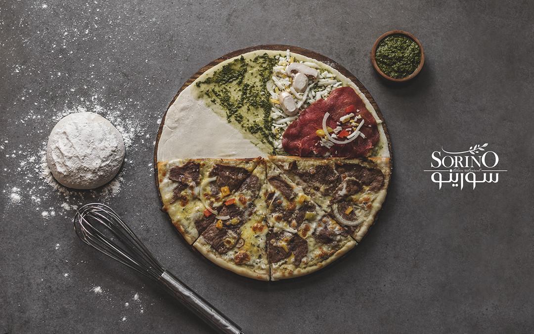 سس پستو، فیله گوساله، قارچ، پیاز، سس بینر