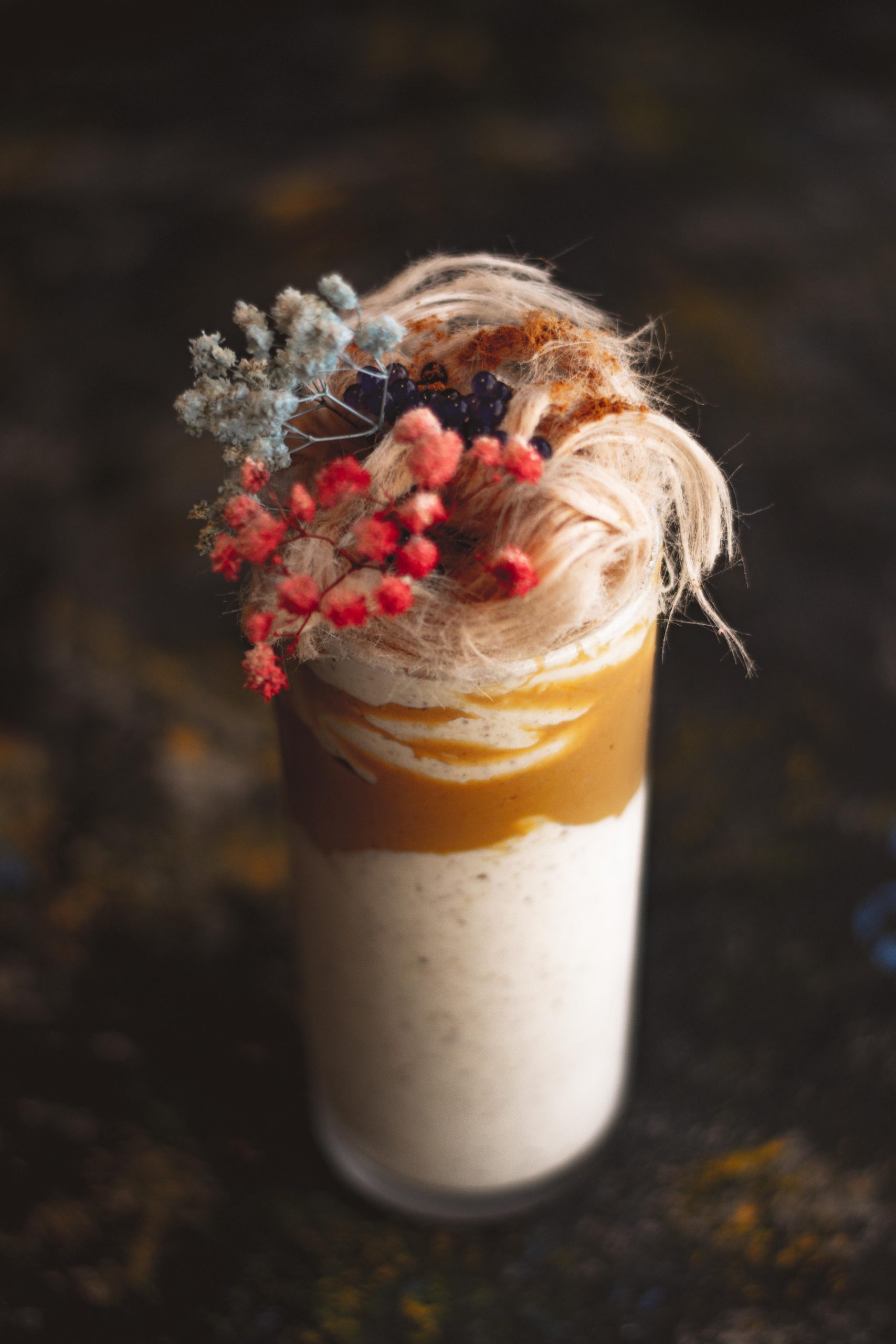 بستنی وانیلی، کره بادامزمینی، مغز گردو، سیروپ فندق