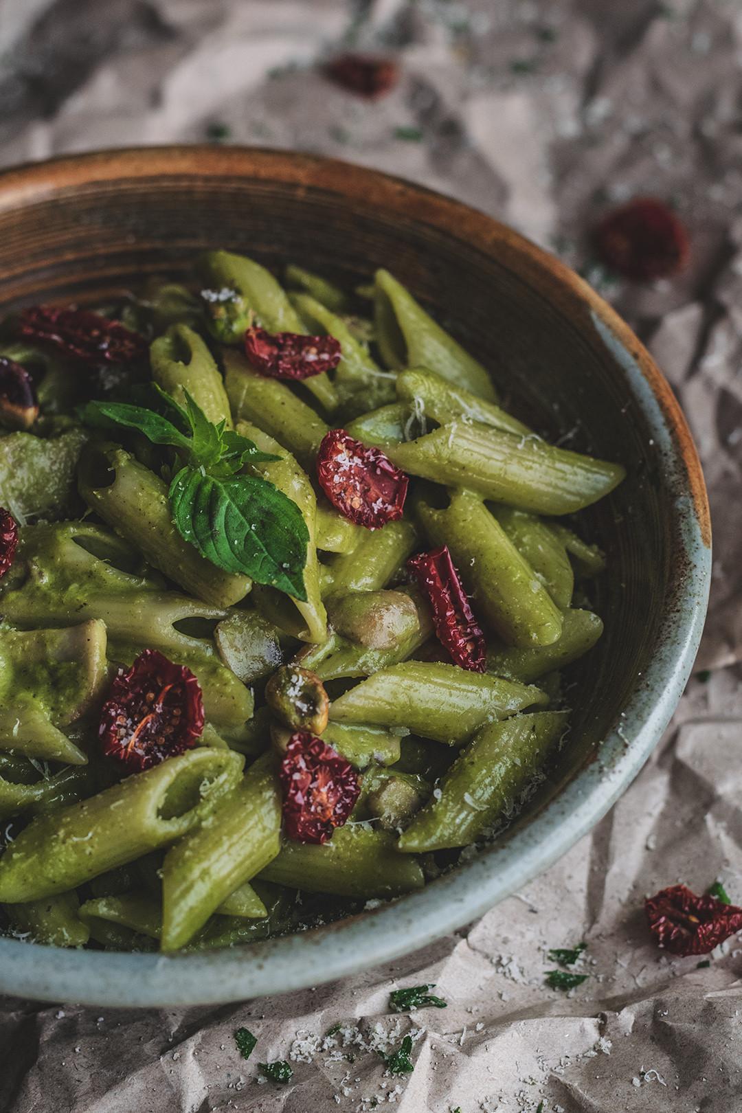 فیله مرغ، پنه، قارچ، سس پستو، پنیر پارمزان